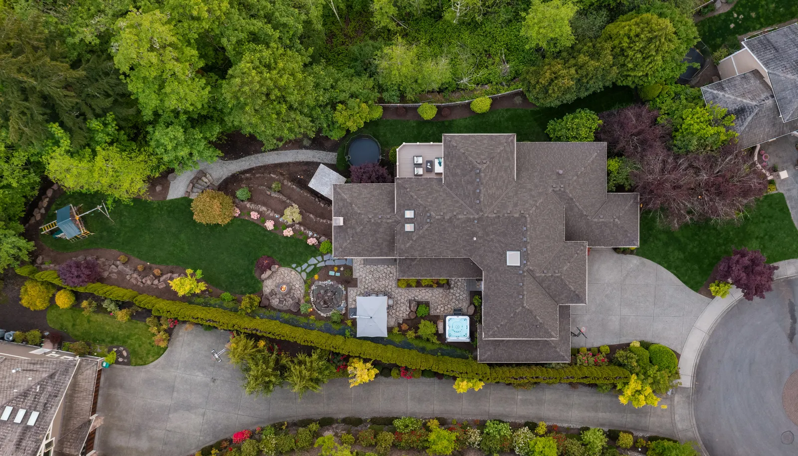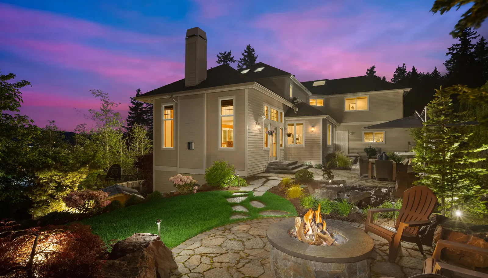 Spend evenings in the jetted hot tub or gather around the firepit amongst tall trees and shrubbery that create additional privacy. The manicured lawn and colorful flower beds are a sight to see. Excellent school district with coveted Cedar Trails Elementary.